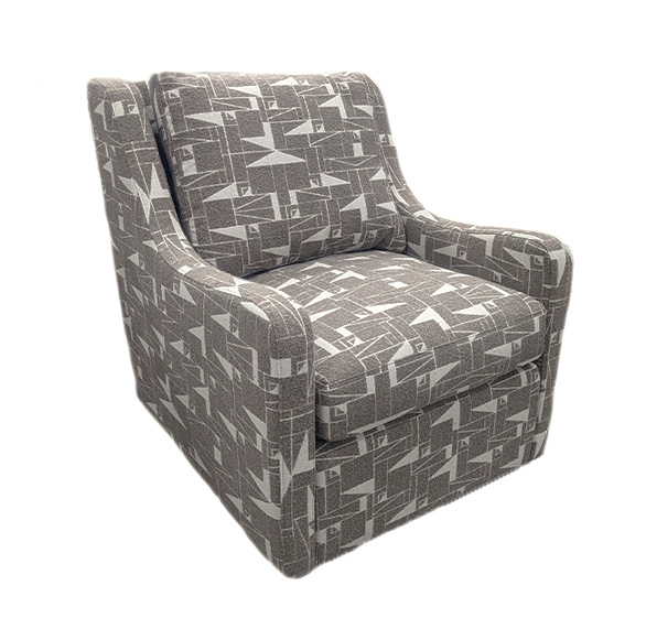 This pillow-back glider chair with sloped arms is the ultimate in comfort. Eco-friendly construction. Certified sustainable, kiln-dried wood frame. Feather wrapped MicroGel soy-based polyfoam. Web and coil spring system. Benchmade in Canada. Available in fabric or leather.