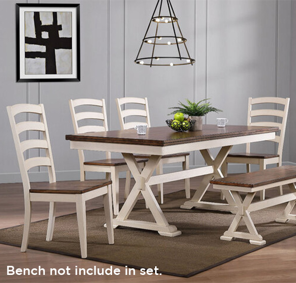 Dining set includes: 1 Dining table, 4 side chairs