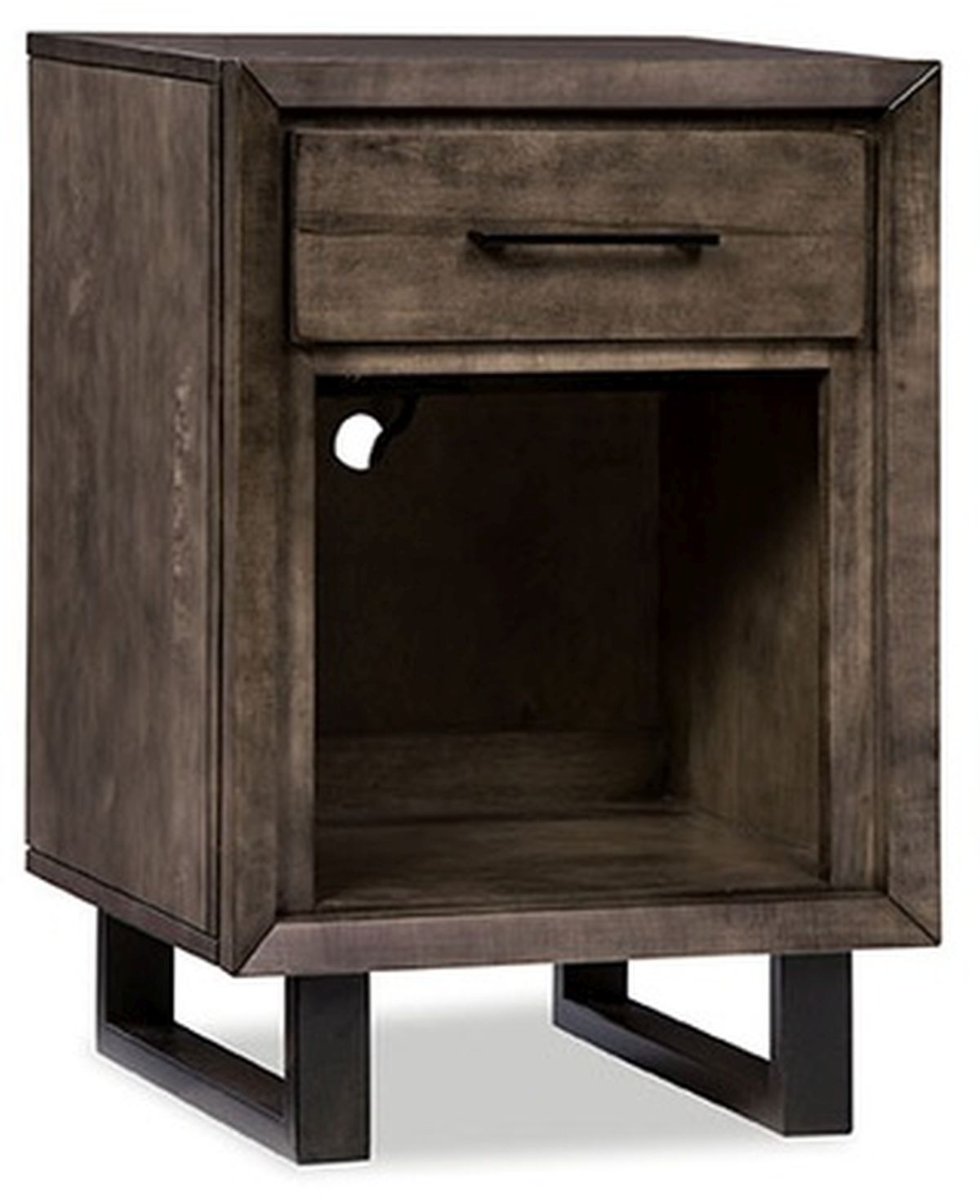 Odyssey transitional nightstand has matte black finish on the handle and metal base.Read More