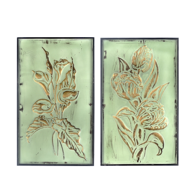 Ganz Wall Metal Painted Patina Floral Wildcr(set of 2)