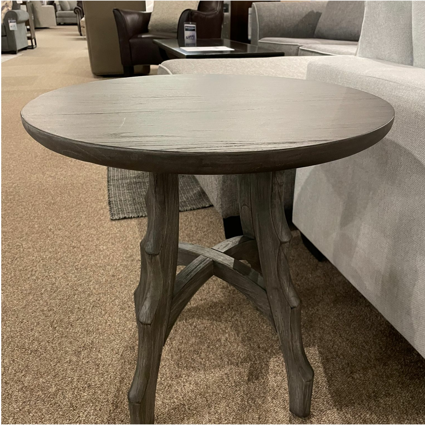 Evoking the feel of a primitive piece carved by a craftsman, the Commerce & Market Round End Table has a scalloped base motif and natural wood finish with gray tones on solid Mindi woods for a casual sophistication.Read More