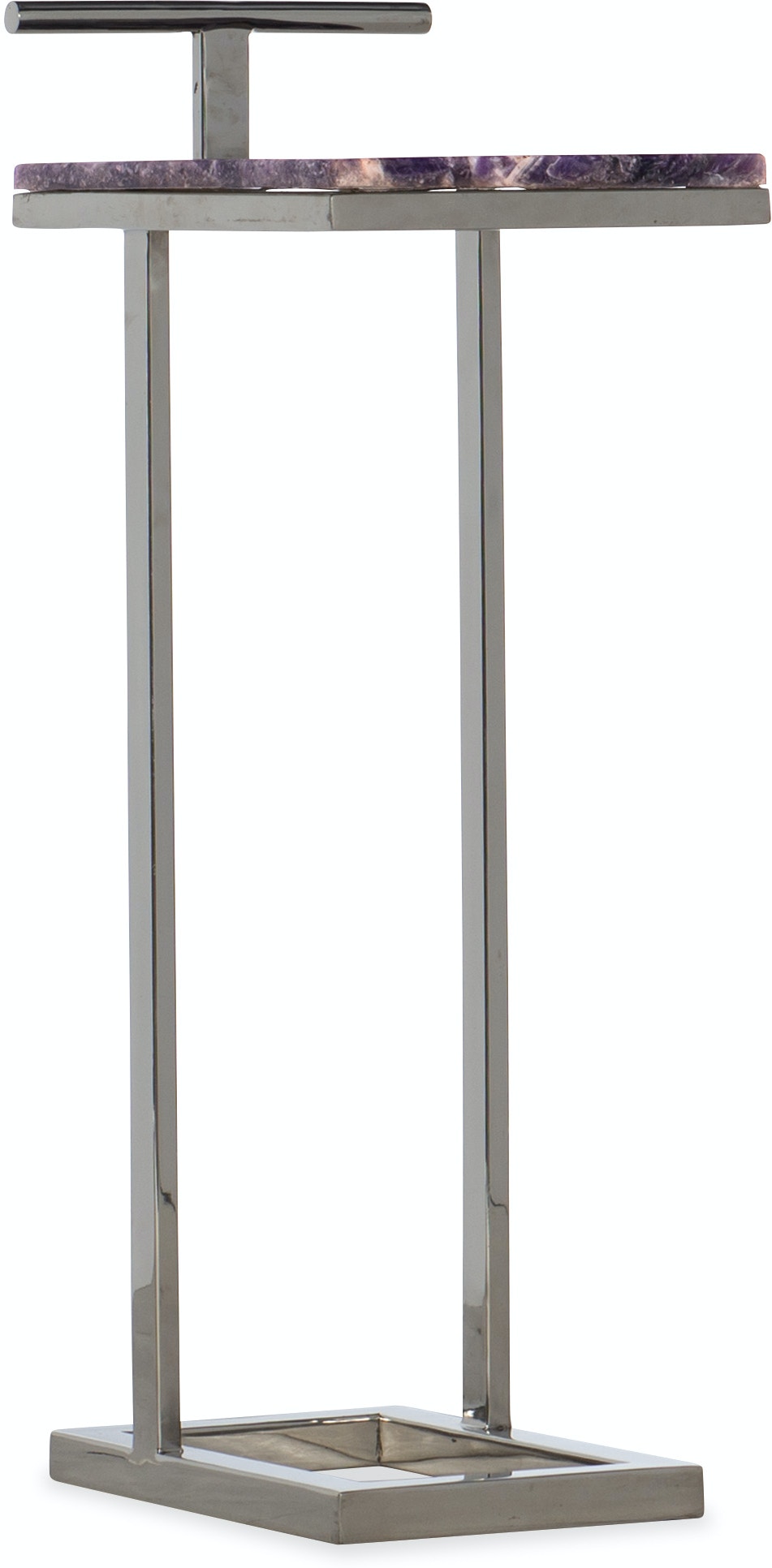Make a stunning statement in a small footprint with the Halee Accent Table. Measuring only 13” wide by 9” deep, this versatile chairside piece has a stainless steel metal base and gallery rail, topped by a naturally beautiful African Amethyst stone top with a mesmerizing pattern, veining and colouration.Read More