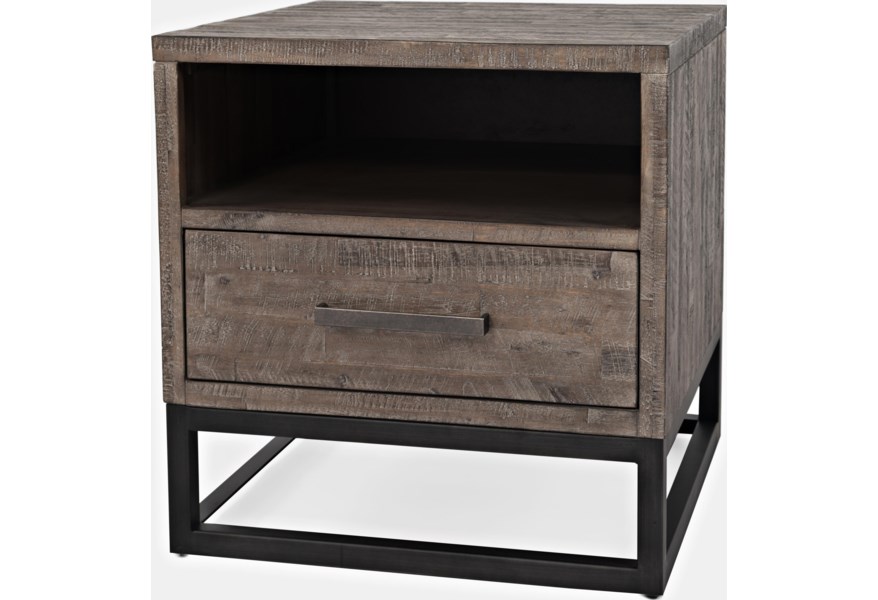 This collection is an attractive balance of natural and industrial materials. Distressed wood tops with solid metal bases create a look that is easily at home in living spaces. Media and occasional solutions offer plenty of open and closed storage solutions to make your space comfortable and attractive. Tasteful distressing should be expected and enjoyed.Read More