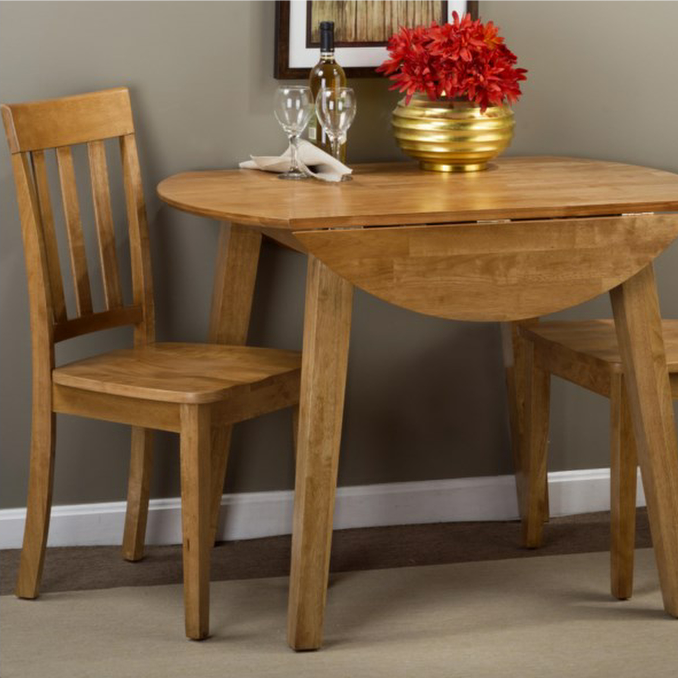 Adding a simple charm to dining room arrangements, this two-four person table set will highlight your home with a look that is relaxed but not under-appreciated. The pieces are made of solid rubberwood finished in a rich and beautiful tone that allows elements of the natural wood grain to show. The legs on the table feature a slight outward slant which not only complements the table but also creates a little extra leg room. The table top also has a drop-leaf construction allowing it to shrink down a bit when you need a little extra space.Read More