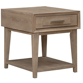 Turn your house into a home with the Brentwood end table. Meticulously crafted with Rubberwood solids and Split Heart White Oak veneers, this piece features a Sandstone finish. The standout element of this table is its carefully crafted drawer, complete with a center overlay panel. This thoughtful detail not only adds a layer of dimension but also enhances the overall visual appeal of the table. The Brushed Nickel bar pull hardware serves as the perfect accent, bringing a sense of vintage sophistication to the piece. Designed for both style and practicality, the square tapered legs elegantly flow to the open bottom shelf. This shelf provides a versatile space, ideal for displaying decorative items, stacking books, or offering additional storage for living room essentials. The Brentwood end table is a true statement of sophistication and practicality.Read More