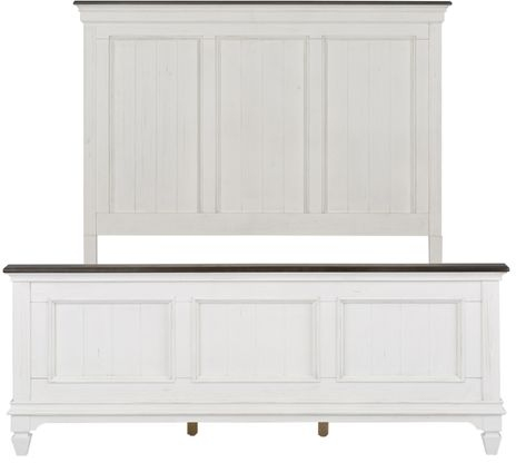 Create a classic look with a casual feel using the Allyson Park panel bed. The two-toned wire brushed white finish with charcoal tops creates a cottage style that works anywhere from the beach to the mountains. Crafted with pine solids and veneers with cathedral white oak tops, this piece features a center slat support system, bolt on rails, bead molding, and charcoal grey cap rails.Read More