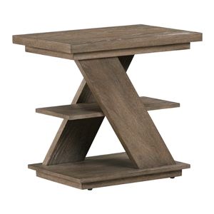 Crafted from Rubberwood solids with Split Heart White Oak veneers in a warm Weathered Saddle Brown finish, it features a striking contemporary crisscross body design that adds architectural interest. This piece offers both an open floating center shelf and an open bottom shelf, providing ample space for storage and display of your favorite books, decor, or essentials. A solid plinth-style base completes the clean, contemporary look, making the Aspen Sky Chairside Table a stylish and practical addition to any room.