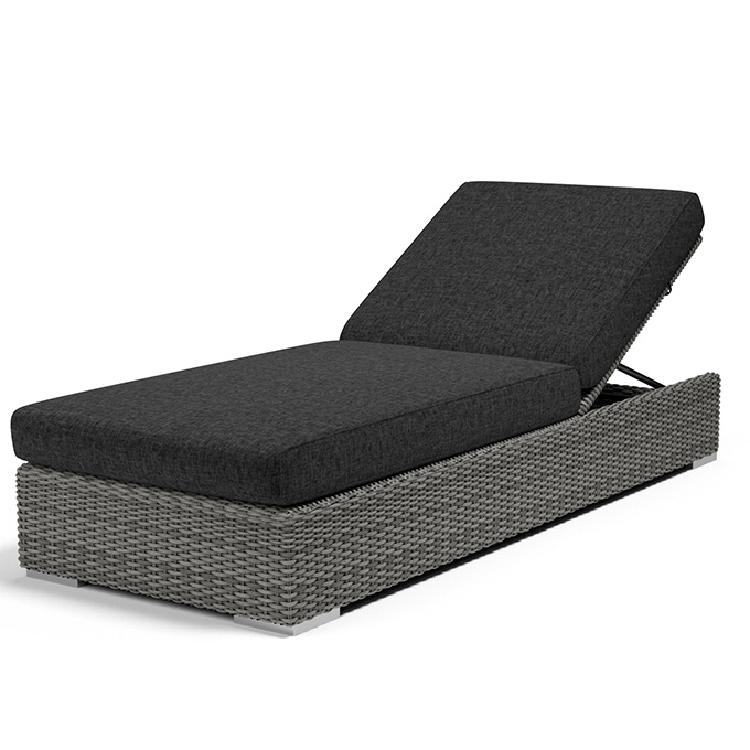 The Emerald II Collection by Sunset West offers luxurious and inviting outdoor seating with the deep plushness of indoor furniture. Contemporary lines are constructed using a fully welded powder-coated aluminum box frame that is then wrapped in hand woven HDPE resin wicker in a Steel Grey finish which mimics natural materials. This low maintenance wicker is made with durable UV-inhibitors and no fillers to prevent premature aging or cracking. A proprietary progressive springing system found in Sunset West wicker deep seating provides 3 levels of support, maximizing comfort and structural integrity. The Emerald II adjustable chaise lounge features 5 positions, including flat, to match the level of relaxation you currently feel. Included are weather resistant, high-resiliency foam cushions in Sunbrella Spectrum Carbon fabric. Non-marking plastic glides on the feet prevent scratching.Read More